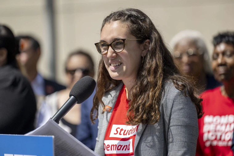 Mia Tretta, one of the students wounded in the 2019 shooting at Saugus High School near Los Angeles, at a news conference about gun legislation at Santa Monica College in 2022.Hans Gutknecht / MediaNews Group via Getty Images file