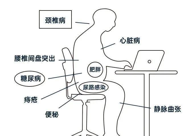 世界卫生组织早已将久坐列为十大致死因素之一。 研究表明,久坐一小时的危害相当于吸两根烟。 长时间保持坐姿会让身体的代谢变慢,血液流动受阻,从而引发一系列健康问题。
