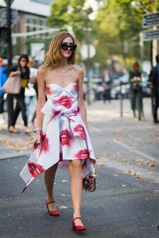 首先给大家推荐的就是连衣裙以及“例假鞋”的搭配方式,可以更好地塑造出层次感,尤其是日常搭配的时候,一条简约的连衣裙,通过时尚亮眼的“例假鞋”更是能够呈现出不一样的韵味。下面这一身搭配就使用了最基础的红色印花连衣裙,搭配了红色的“例假鞋”,通过红色的印花元素来塑造出层次感, 更加时髦。