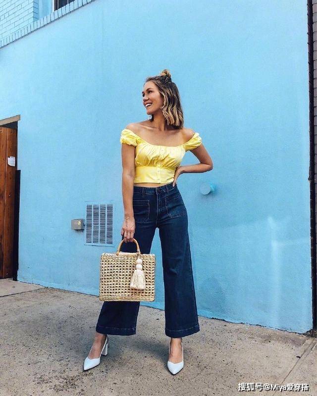 今年夏天到来之前就非常大热的泡泡袖当然也得安排上,但是夸张宽松的泡泡袖并不能起到显瘦的效果,反而会增加肩宽。这种微微的泡泡袖效果是最佳的,搭配一条深蓝色的阔腿版型牛仔裤,假胯宽和腿粗一次性解决,搭配小白鞋或者高跟鞋都极具美感。