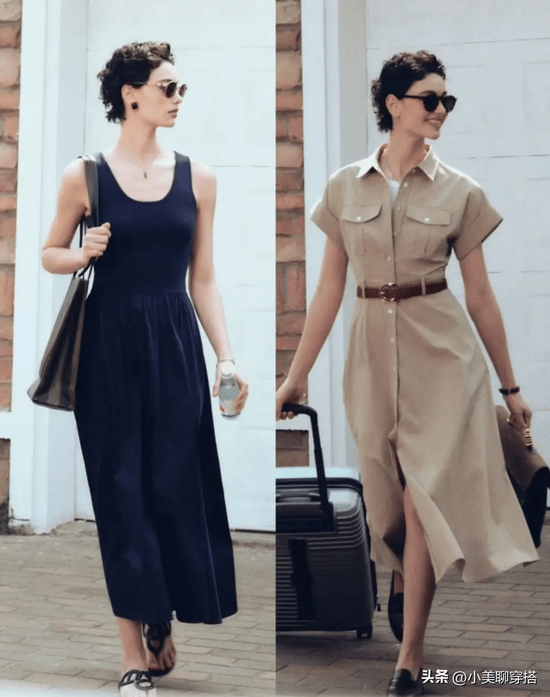 初夏,卡其色的衬衫裙,得体端庄,给人一种典雅的书卷气,同时又特别飘逸时尚,很适合日常上班通勤。