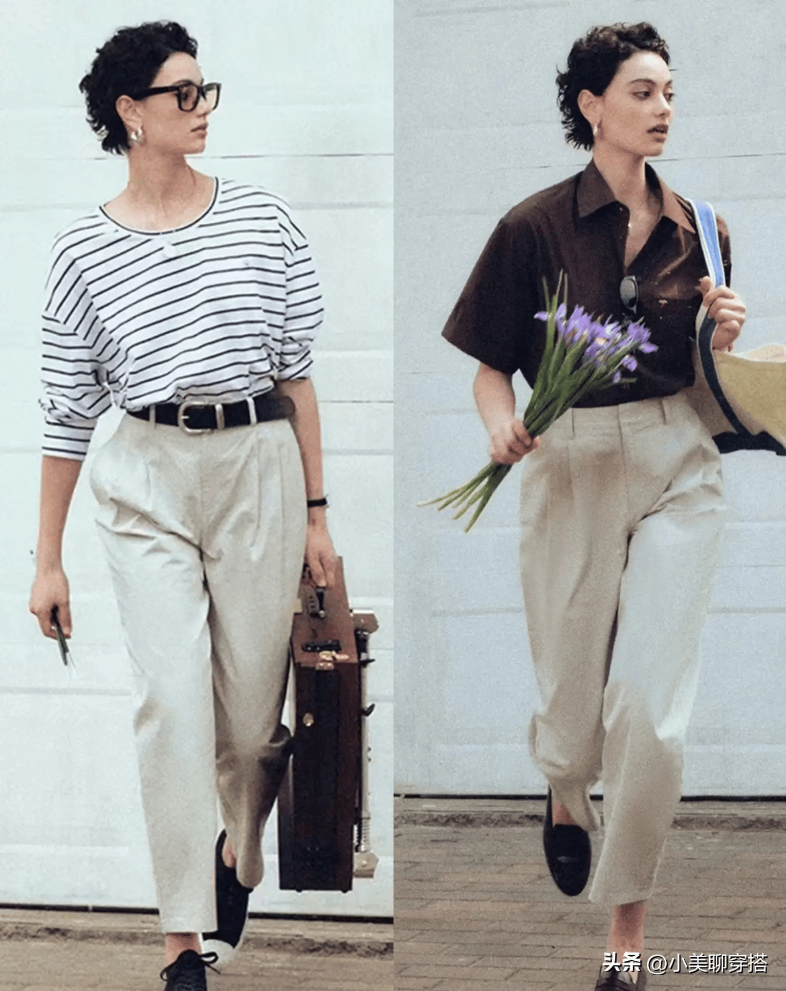 卡其色哈伦裤非常经典,可以搭配任何颜色的上衣,都有一种时髦的松弛感,而且很帅气。