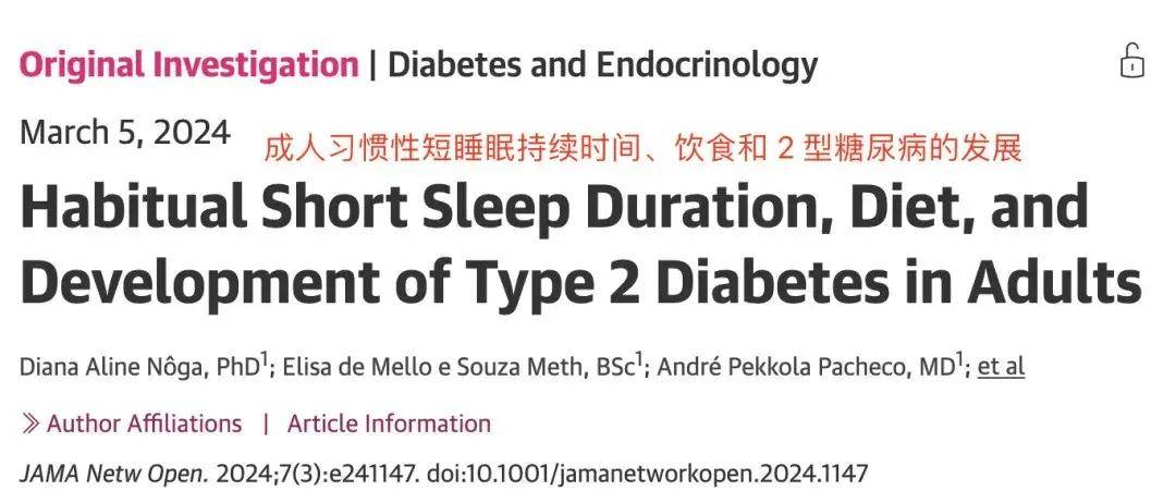 [1]Nôga DA, Meth EMES, Pacheco AP, et al. Habitual Short Sleep Duration, Diet, and Development of Type 2 Diabetes in Adults. JAMA Netw Open. 2024;7(3):e241147.