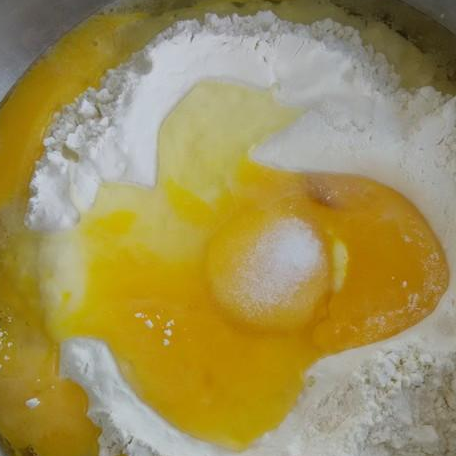 面粉放入盆里,打入鸡蛋,放入适量盐。倒入一盒纯牛奶和酵母粉搅拌至化开。筷子一个方向的搅拌面粉,使面粉和液体均匀融合,最后成絮状即可,絮状表示面粉和水已经大致融合了。之所以用牛奶代替清水是因为用牛奶和面,面团更加揉软,炸出来的油条金黄酥脆还蓬松。想必这个很多人不知道的吧。