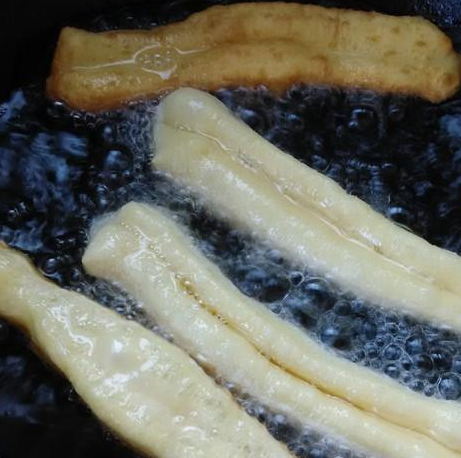 然后把油条生坯放进油锅中立刻就会浮上来,要用筷子拨弄着翻转,中大火炸制,不要用小火,那样炸出来的油条外皮会很硬,等到油条的两面都成金黄色就可以捞出来。这样膨松香脆的油条就做好了,趁热吃口感最好。炸的时候,用专门的长筷子不停的翻油条,使油条均匀的受热,这样炸出来的油条更蓬松。
