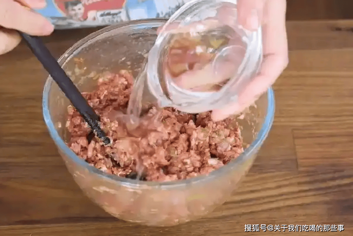 3、肉馅想要嫩嫩的,打水这一步必不可少,千万不要怕麻烦。
