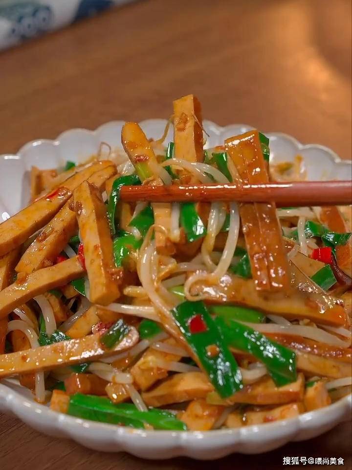 豆芽炒香干不仅口感丰富,而且营养丰富。香干富含蛋白质、钙等营养成分,豆芽则含有丰富的维生素和膳食纤维。这道菜既适合作为家常菜,也适合在宴客时端上餐桌,一定会受到大家的喜爱。