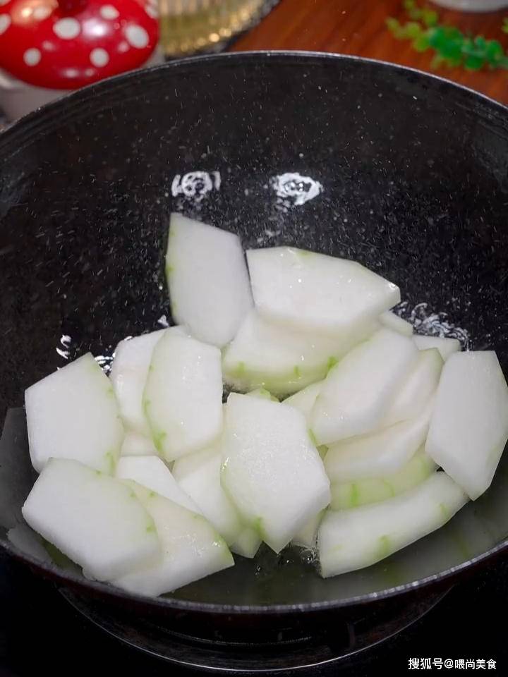 2、另起锅,锅中倒入适量的油,油热后下入冬瓜。翻炒至冬瓜断生。冬瓜的翻炒时间要适中,既要保证冬瓜熟透,又不能炒过头,以免影响口感。