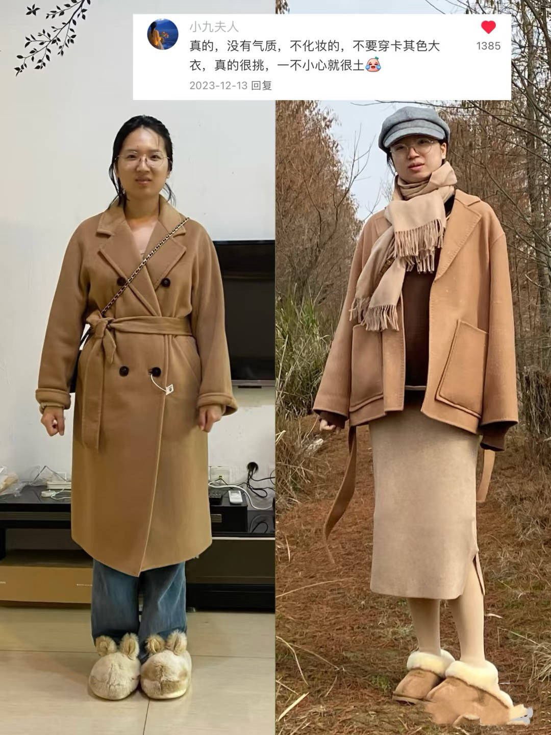 装时髦的女人,只能学到表面功夫,也许不咋花里胡哨的穿搭。但是衣服款式没有时尚感,满是大妈气息。就像红棕色长款羽绒服,臃肿显胖又显得很廉价。