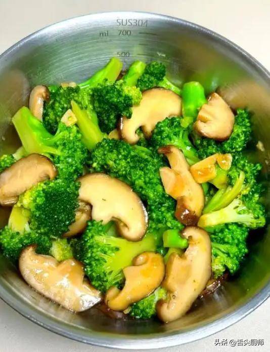 做法: 1. 准备食材:香菇去根部,洗净后切片。西兰花洗净,切成小朵,用清水浸泡10分钟去除杂质。 2. 焯西兰花:锅中加水,加入适量盐,水开后将西兰花放入锅中焯水,约1-2分钟,西兰花变色后立即捞出,用冷水冲凉,保持色泽鲜亮。 3. 炒香大蒜:锅中加入适量油,放入切好的大蒜片,用小火炒香。 4. 炒香菇:加入切好的香菇片,翻炒均匀。香菇出水后,继续翻炒至香菇变软,水分蒸发。 5. 加入西兰花:将焯水后的西兰花加入锅中,与香菇一起翻炒均匀,注意翻炒时不要过度搅动,以免西兰花朵散开。 6. 调味:加入1.5汤匙生抽,适量盐,翻炒均匀,加入少许鸡精和胡椒粉,增加风味。 7. 炒匀完成:继续翻炒1-2分钟,确保香菇和西兰花都均匀入味,最后尝一下口味,必要时可以微调盐量。 8. 装盘:将炒好的香菇西兰花盛出装盘,即可享用。