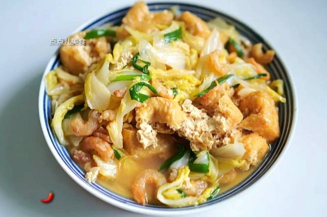 所需食材:娃娃菜一颗、油豆腐适量、虾米和瑶柱适量(可放可不放)、小葱一根、生抽一勺、蚝油一勺、盐/食用油适量。 制作方法:
