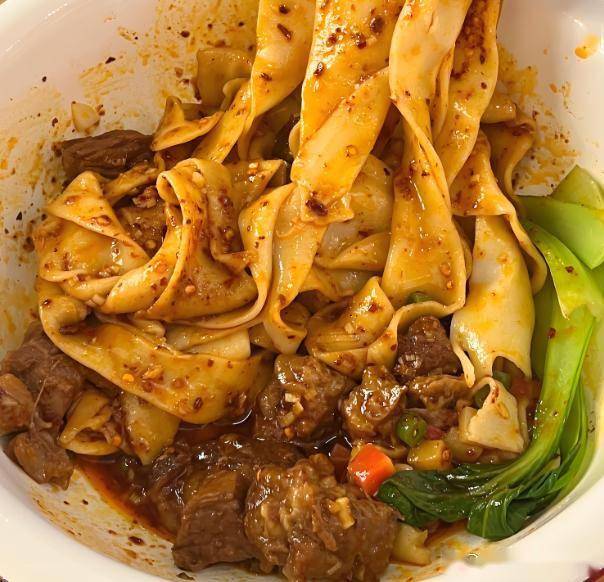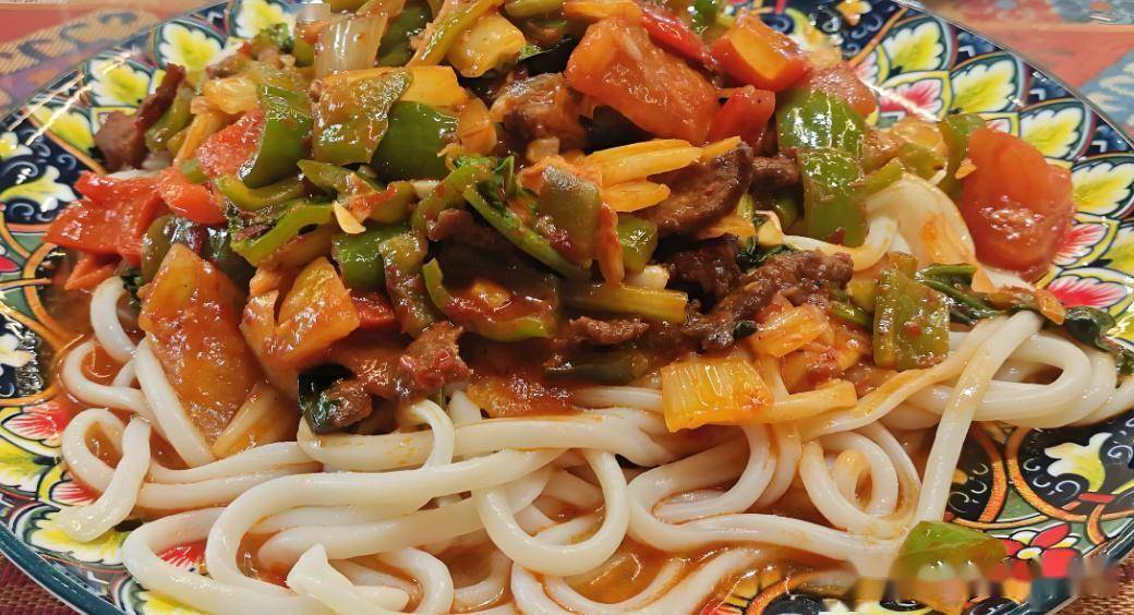 2、咱们得聊聊新疆拌面,也就是大伙儿常说的拉条子。这碗面,那可是新疆人民的骄傲啊!面条宽宽厚厚的,吃起来特别有嚼劲。浇头也是丰富多样,什么羊肉、鸡肉、牛肉,还有各种蔬菜,想吃什么就加什么。最关键的是,那调料,那味道,简直了,吃一口就停不下来!在新疆,吃拌面配啤酒,那简直是人生一大乐事啊!