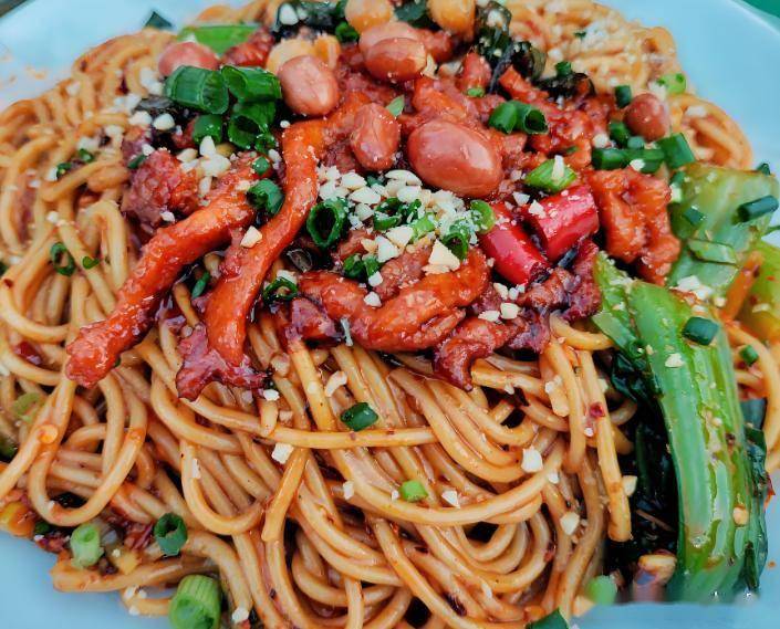 6、四川的担担面,那可是面食界的“麻辣担当”啊!面条细滑有弹性,浇头麻辣鲜香,吃一口就让人欲罢不能!在四川,无论是街头巷尾的小摊小贩,还是高档餐厅,都能找到担担面的身影。吃上一碗地道的担担面,那叫一个辣得过瘾、麻得舒服啊!