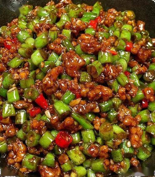 豆角要先干煸才够香!豆角切丁直接下锅(不放油),小火煸到表皮起皱盛出。重新倒油爆香肉末,加郫县豆瓣炒出红油,这时候倒回豆角一起翻炒。加点糖和生抽调味,喜欢麻辣的可以撒把花椒粉。