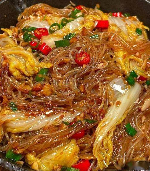 隐藏吃法:加个煎蛋变成豪华版,粉丝吸饱了蔬菜的甜鲜,比吃肉还过瘾。