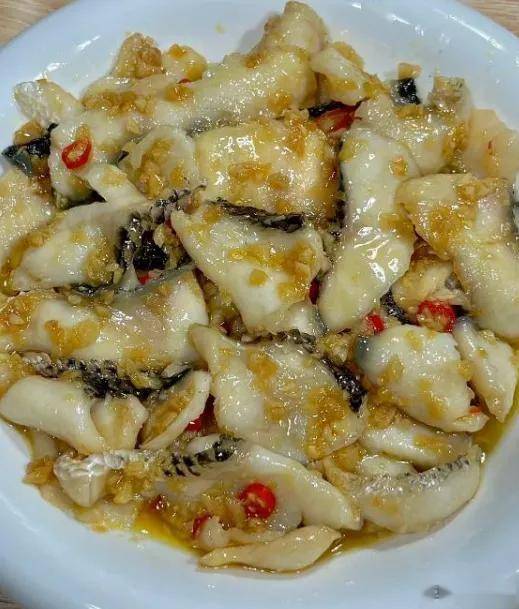 巴沙鱼片是懒人之光,没有刺还便宜。鱼片切片后用盐和料酒抓匀,裹层薄淀粉锁住水分。多多的蒜末用小火炸到金黄,捞出备用。余油把鱼片煎到两面微黄,倒回蒜末,撒点葱花和蒸鱼豉油。
