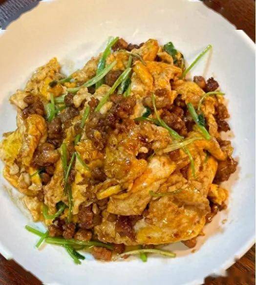 一、鸡蛋香菜炒肉末:香到邻居来敲门