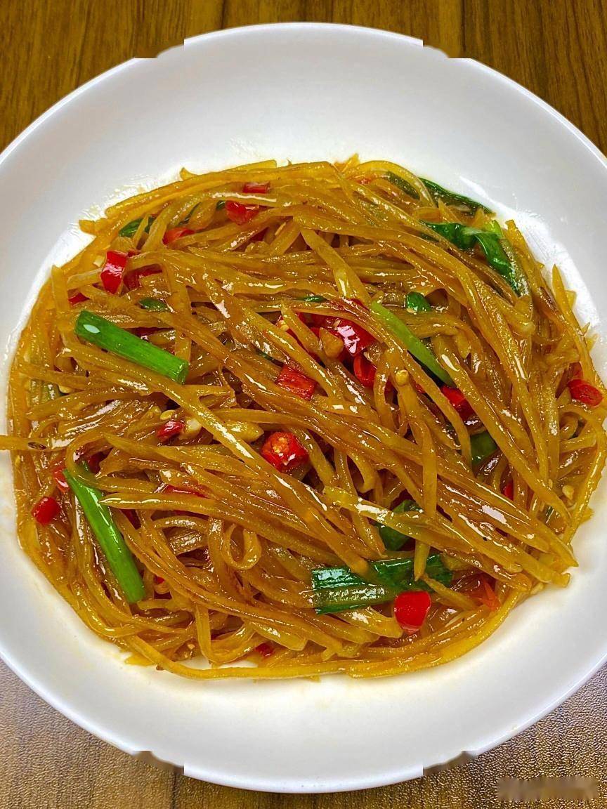 1、准备两个土豆,去皮洗净后改刀切成丝,再用清水冲洗去多余的淀粉,捞出控干水分。2、起锅烧水,水开入土豆丝,焯水30秒捞出控干水分。