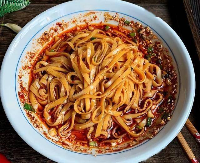1、首先准备湿面条,口感比较好。碗中放入适量辣椒面,花椒面,胡椒粉,白糖,盐,白芝麻。锅内烧油,油温升至七成热时起锅,把热油浇在小料上激发出香味,然后搅拌一下,再加入适量鸡粉,陈醋。生抽搅拌均匀,倒入碗中备用。