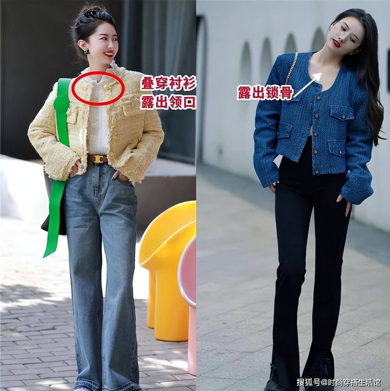 其次想要将小香风外套穿出高级感的话,除了单一固定的穿搭方式之外,我们还可以借助更高级的穿搭方式,比如像是秋冬最常见的叠穿搭配,我们可以选择内搭叠穿小香风外套,但我们要注意叠穿方式,并不是一味忽略叠穿。
