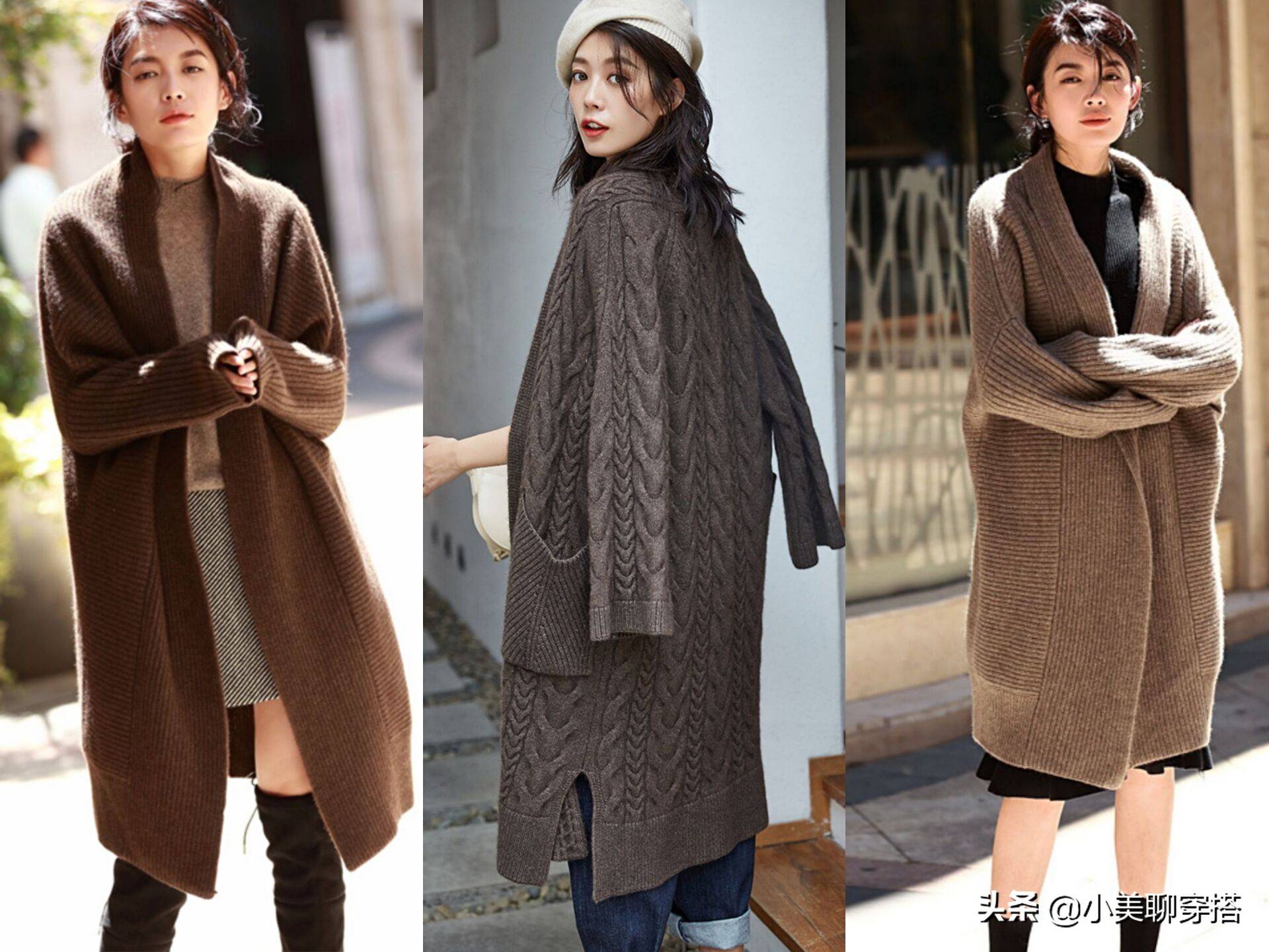 长款毛衣外套也是今年秋冬季很流行的单品,厚实保暖,穿起来又不会显得臃肿。H型的长款毛衣比较适合小个子女生,修身显瘦一些,廓形毛衣外套则大气慵懒,适合高个子。