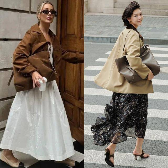 谷仓夹克+长裙,都市漫游风的自由与浪漫