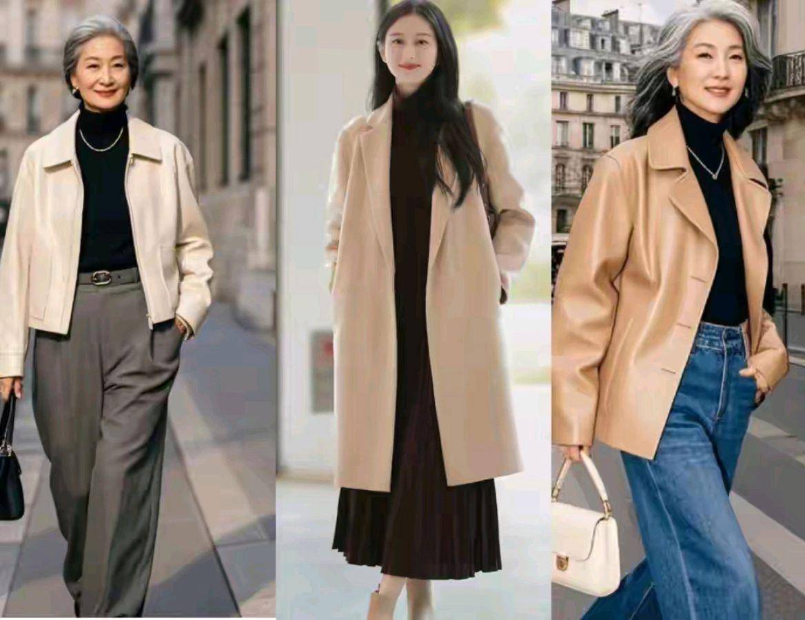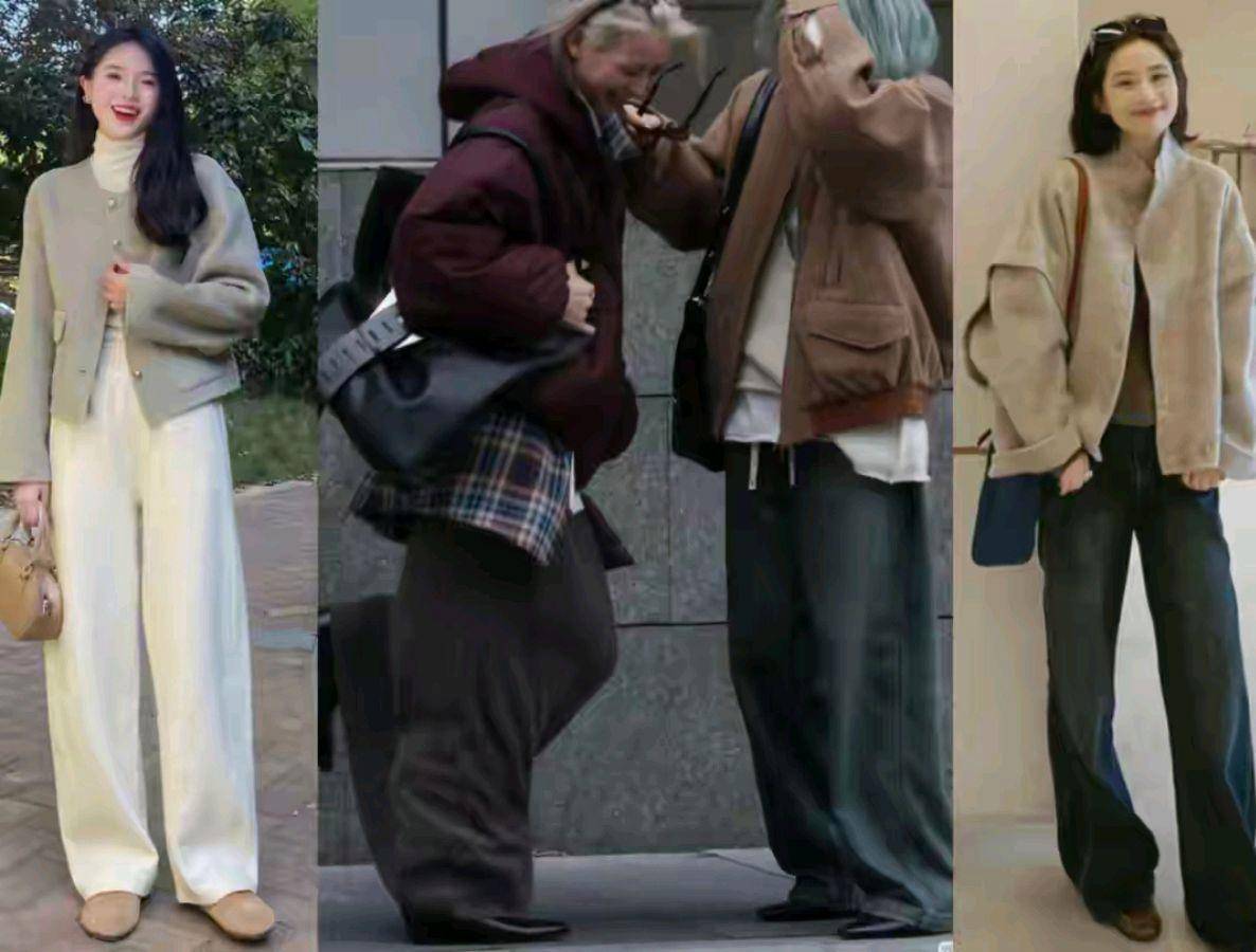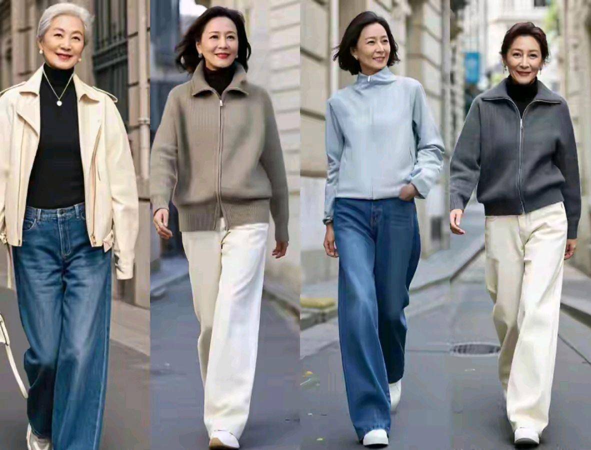 像秋冬季节的毛衣或短外套,下装选择米色直筒裤或牛仔裤搭配,脚穿小白鞋或运动鞋,进一步强调造型舒适感,整体休闲又减龄。