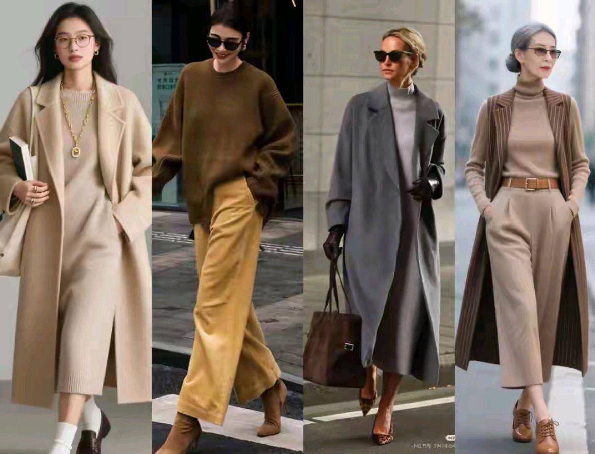 秋冬不想穿得花里胡哨,只想穿得简单舒适,建议选择全身同色系搭配,轻松穿出不费力的高级感。