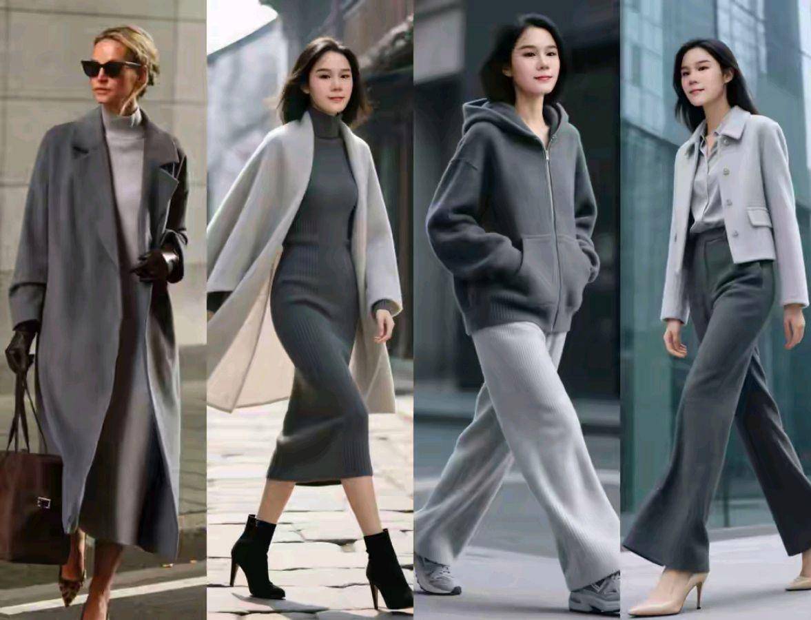 比如内搭选深灰外套选浅灰,反之,内搭选浅灰外套选深灰等,还可以选择,上下不同色调的灰色服装搭配,色调相差越大,层次越分明。