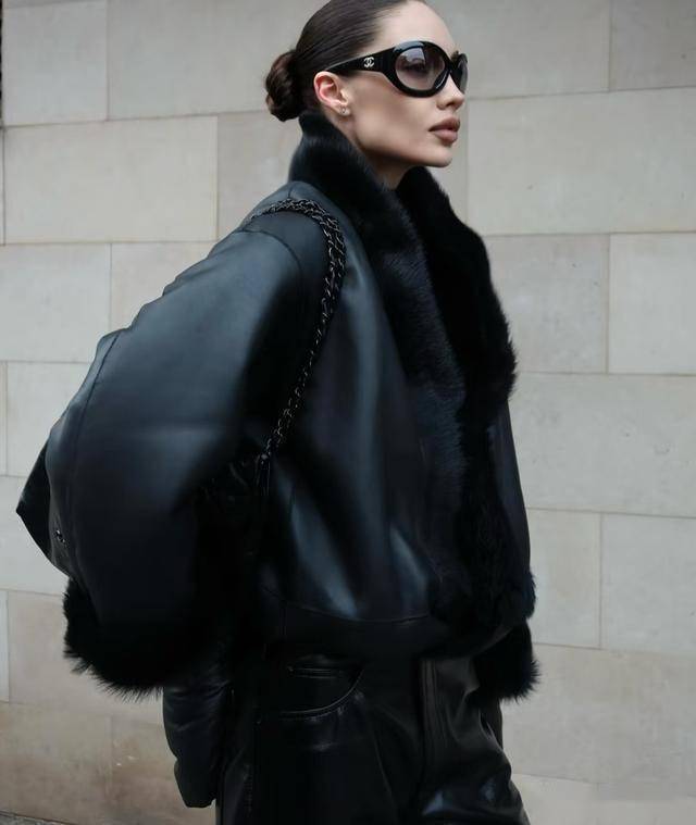 比如一件黑色短款的皮毛一体夹克,感觉酷酷的,又超级保暖,搭配黑色皮裤,更有种痞帅的风格,简直太帅啦!