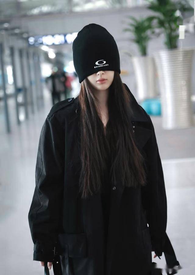 冬天怕冷的女生,也可以尝试一身黑色的搭配。