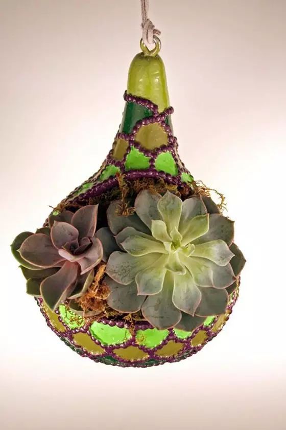 去郊游,农家院都会有很多样式的葫芦,如果你自己家就种那简直太美好了!经过处理,就可以种花。尤其是多肉最为适合了,当然多肉哪里都适合!