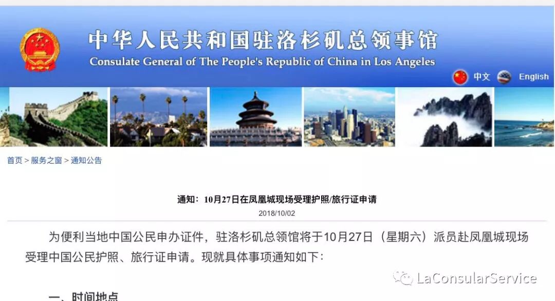 为便利当地中国公民申办证件,驻洛杉矶总领馆将于10月27日(星期六)派员赴凤凰城现场受理中国公民护照、旅行证申请。现就具体事项通知如下:
