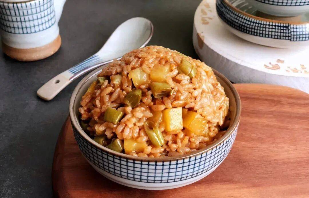 / 食材 / 豆角、大米、食盐 / 步骤 / 1、豆角炒一下,加水烧开 2、倒进只有米的电饭锅里,加少许盐调味 3、等电饭锅跳掉以后就可以出锅了