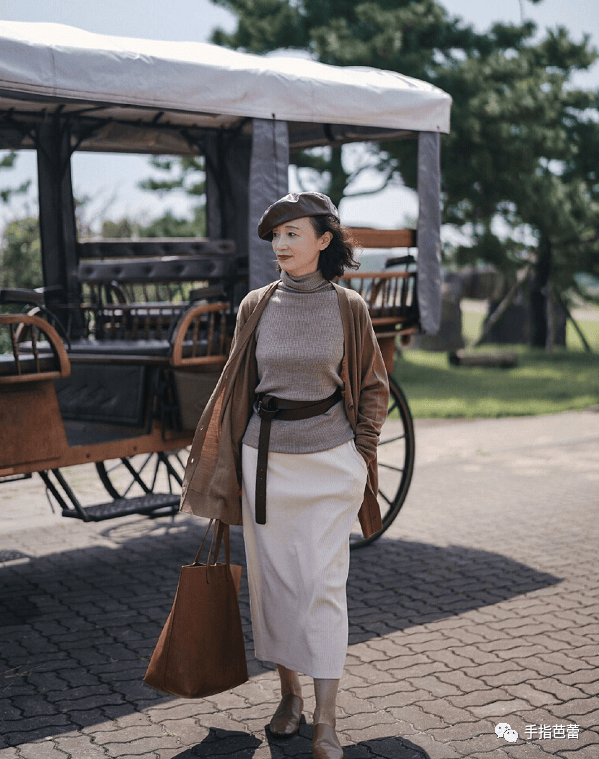 风格多变一点的姐妹们,不如大胆的利用半身裙,演绎出成熟女性的魅力吧,无须过于花哨的版型剪裁,仅用纯白色的款式即可,上搭灰色高领衫+针织外套,塑造整洁的穿搭效果。 而深咖色腰带、棕色包包的小心机点缀,让简约的造型变得精致不少,更强调了协调感,看着很有腔调。