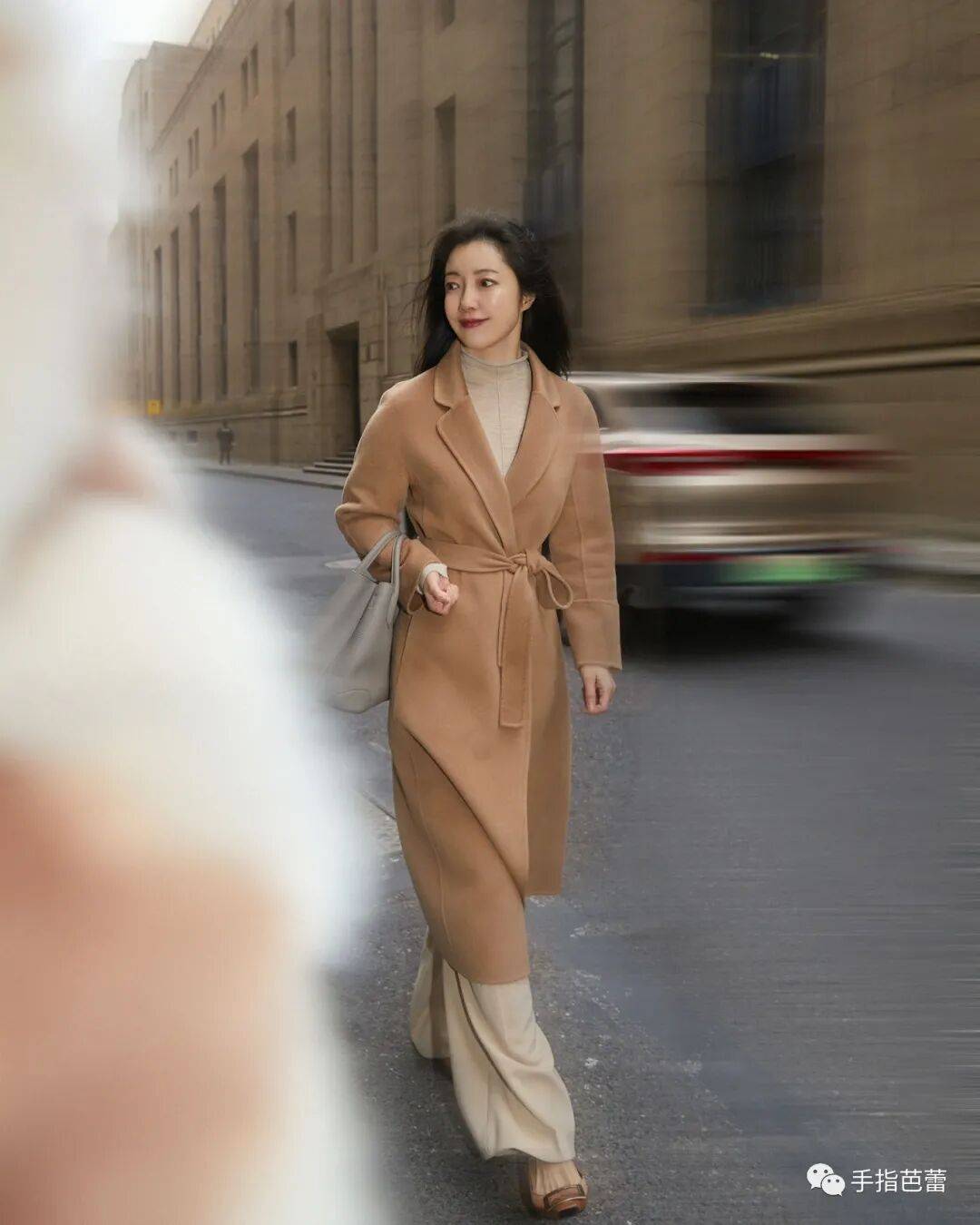 像面料细腻的驼色羊绒大衣,是秋冬季节的热门单品,高贵气息很是浓郁,根据低调的色彩,选择杏仁色打底衫+阔腿裤,碰撞出层次细节之余,色彩过渡更是协调又自然,恰到好处的细节流露,时髦与贵气兼具。