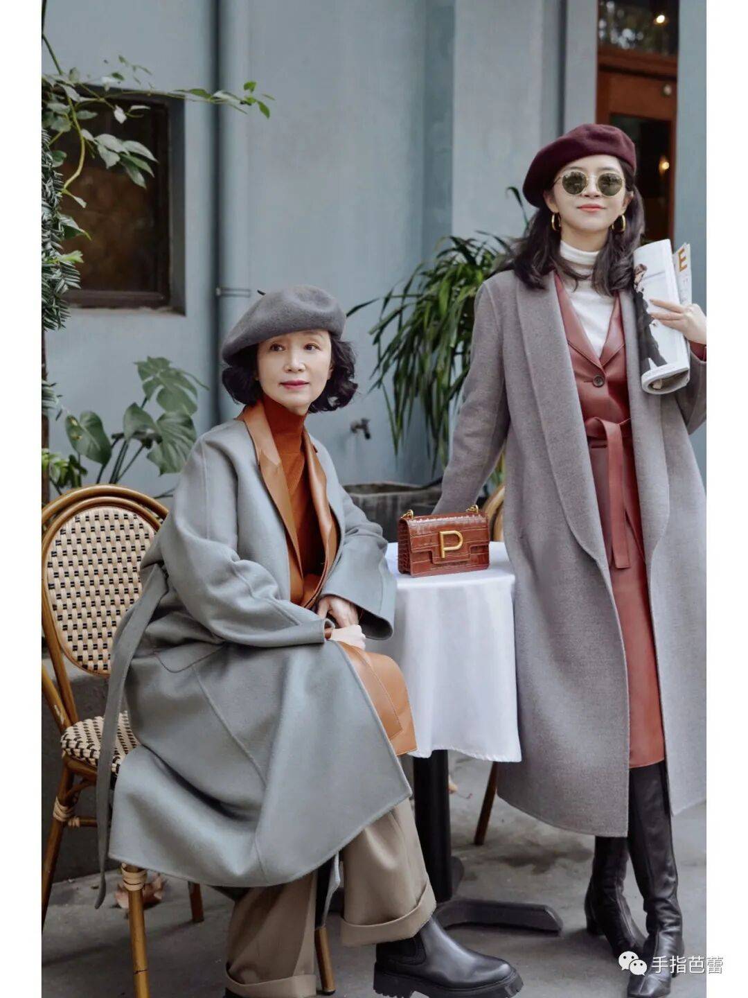 而三木妈妈这身就以枫叶红,代替纯正的红色,打破传统穿搭的约束,配上浅灰色的点缀,展现出高级的魅力。 只见她以枫叶红打底衫为基础,下搭军绿色阔腿裤,鲜明的撞色感,视觉效果很是跳脱,配合着棕色皮质马甲的点缀,构造欢快的色彩细节,即便是浅灰色大衣的掩盖下,也丝毫不显得沉稳老气。