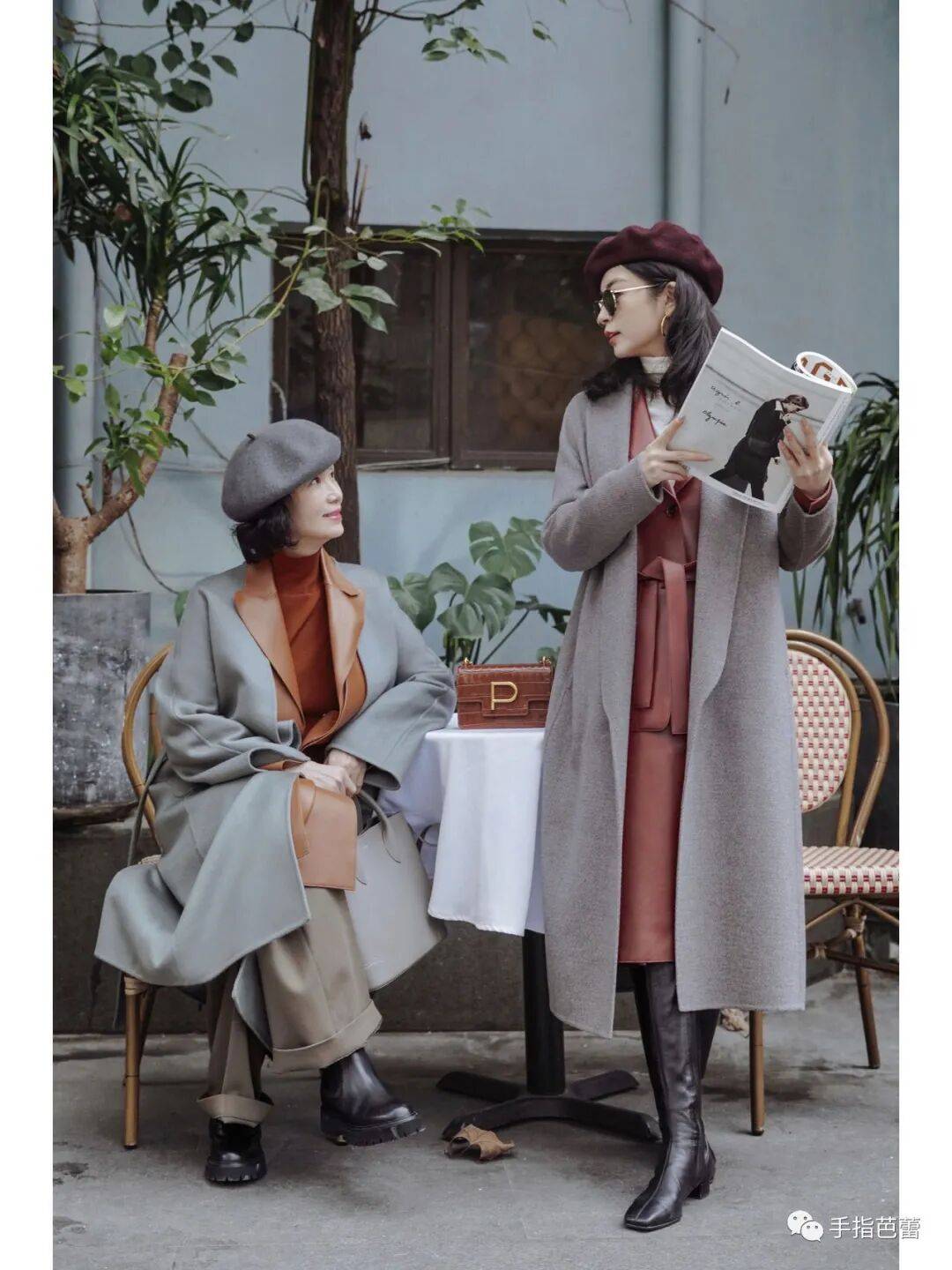 又或者像“白娘子”这般,以紫色大衣、毛衣以及围巾,奠定主体色基础,下搭浅灰色阔腿裤与黑色长靴,构造清晰的层次细节,视觉上削弱臃肿感,显高又显瘦,更关键是赶跑枯燥的穿搭感,显得活力满满。
