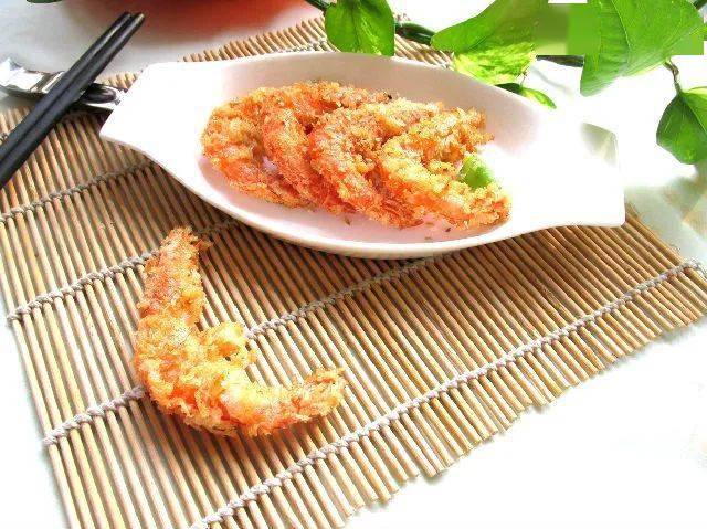 ③虾仁裹上面糊,炸至金黄捞出,再大火复炸半分钟捞出控油!