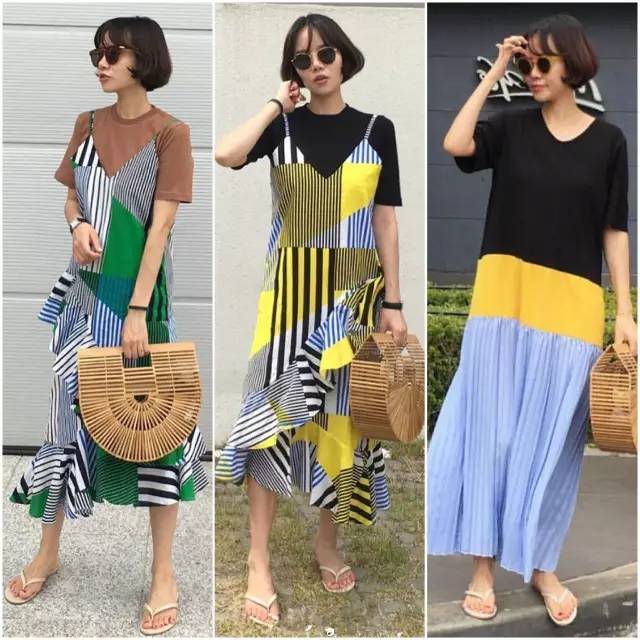 除了印花之外,几何条纹的立体感更强,也比较有都市感,也属于看不厌的一种花色。