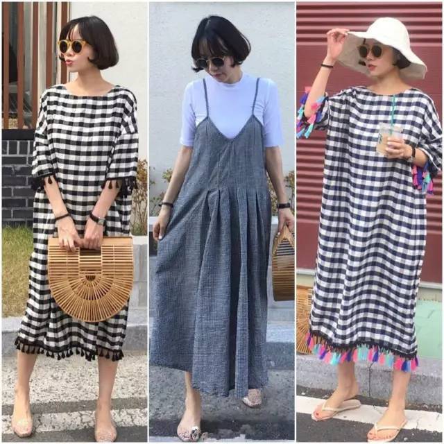 还有一些经典的格纹、条纹单品,比如黑白格纹、红白格纹、蓝白格纹以及粉白格纹,不但有减龄的效果,也是每年都会有的经典。