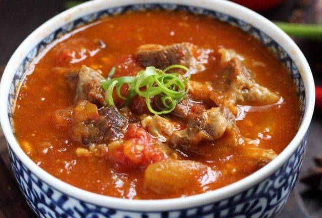 (5) 翻炒至西红柿变软出汁,加入清水,大火烧开,转小火慢炖1个小时。