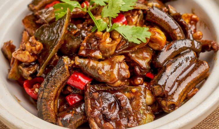 (6) 锅中加入适量盐、糖、鸡精、蚝油翻炒均匀。