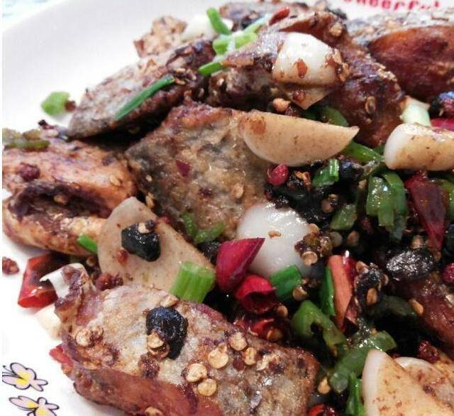 用料:带鱼400克豆豉25克;干辣椒10克食油40克食盐3克黑胡椒末2克大葱15克白皮蒜20克生姜10克葱花少许酱油10毫升料酒15毫升白糖适量;