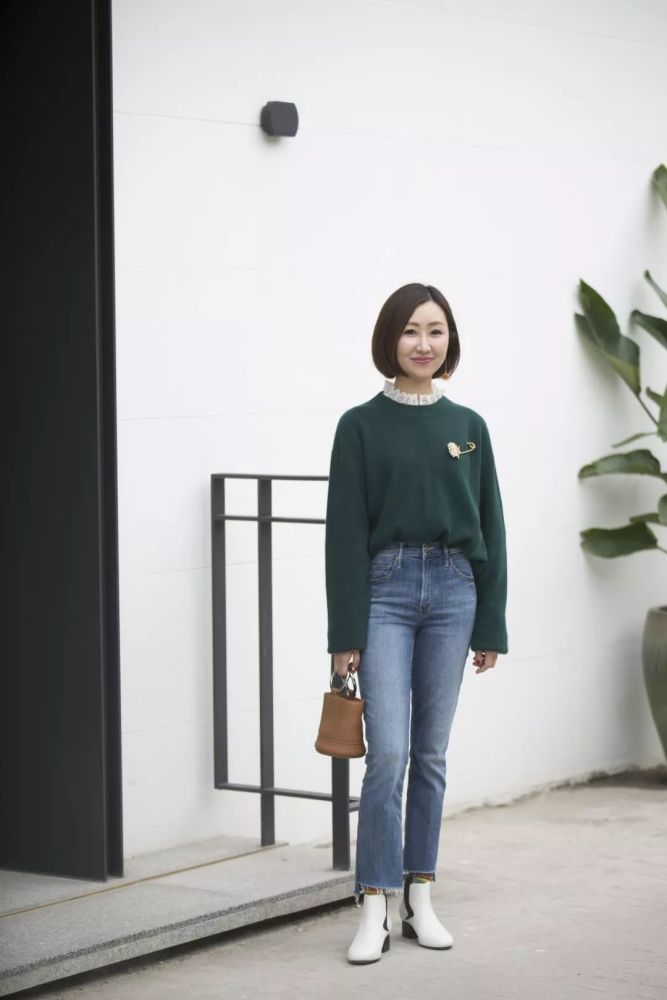露出领子这件事已经不新鲜了,但我更推荐你们选精致复古的拉夫领。基本款的绿毛衣,加上一圈白色的领口,是不是像换了一件新的?▼