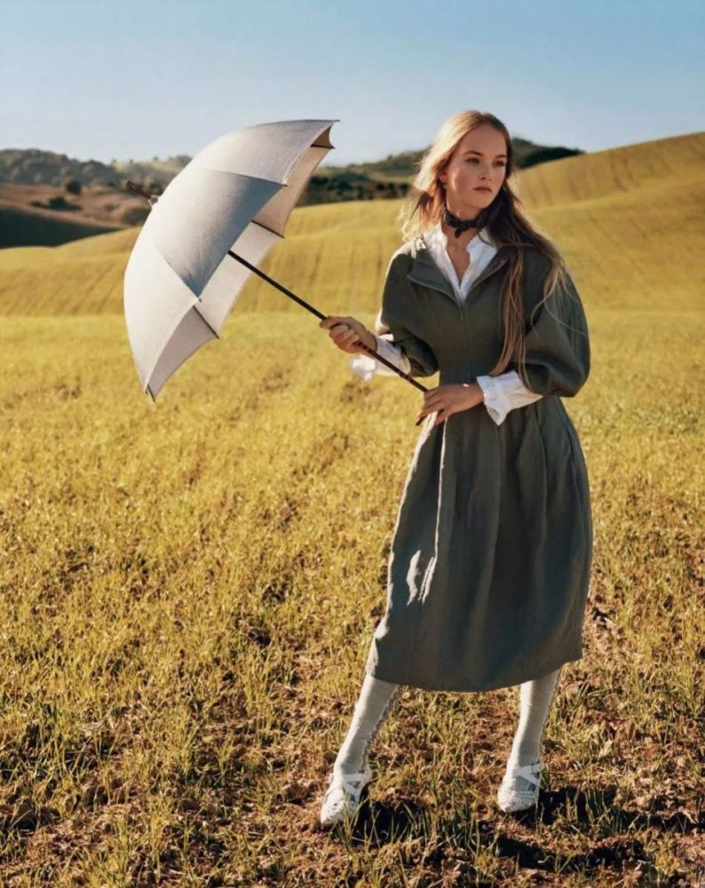 但最适合露出来的还是自带复古风的喇叭袖。