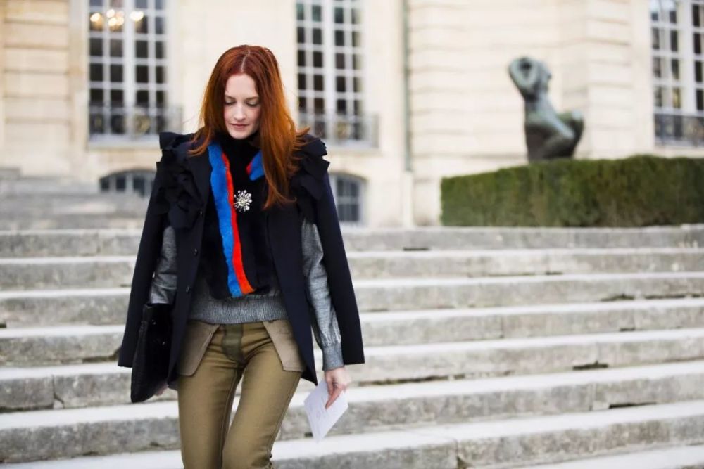 袖子 不知道你们有没有发现,这几年时装精们不论穿什么外套,都喜欢露出一点内搭的袖子来。 这个小心机也是大有作用的。看,露出红色袖子,全身色彩是不是变得更丰富了。▼