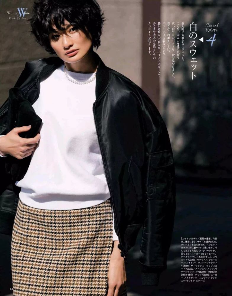 一截白色浪漫的领口,让硬朗的休闲单品有了不一样的气质。白色的领口还可以起到提亮气色的作用。▼