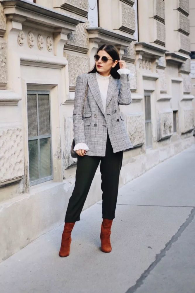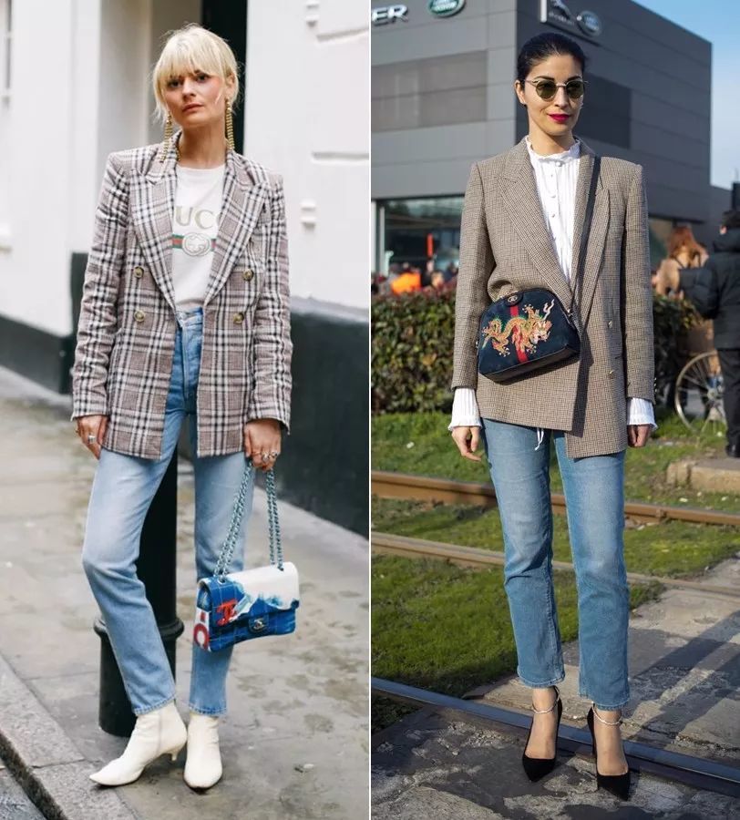 它同样也有改变风格的神奇魔力。容易穿出老干部风的西装外套,搭配上白色的喇叭袖针织衫,竟然有了少女感~▼