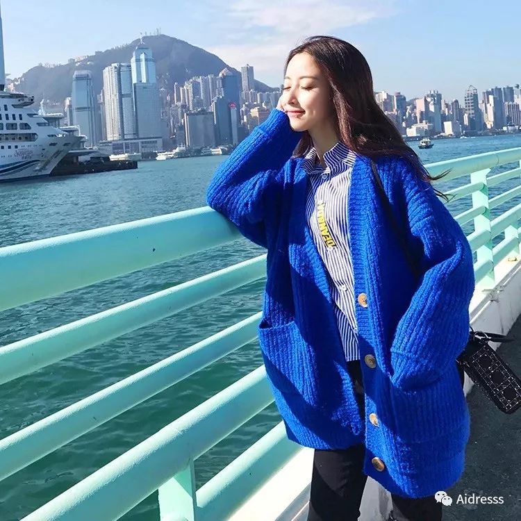 6.加厚V领宽松开衫外套。款式简约,版型宽松,不挑人穿。前身有两个口袋,日常放零钱手机都非常实用,搭配复古树脂扣hin有复古的味道噢。料子软糯舒适,很厚实,再不怕出门起风了。